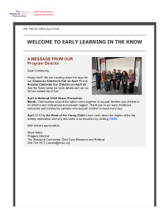 The R&R Early Learning Newsletter provides Program News and Updates, Early Learning Related Policies, Tips, Inspiration, and Upcoming Events. Available in PDF